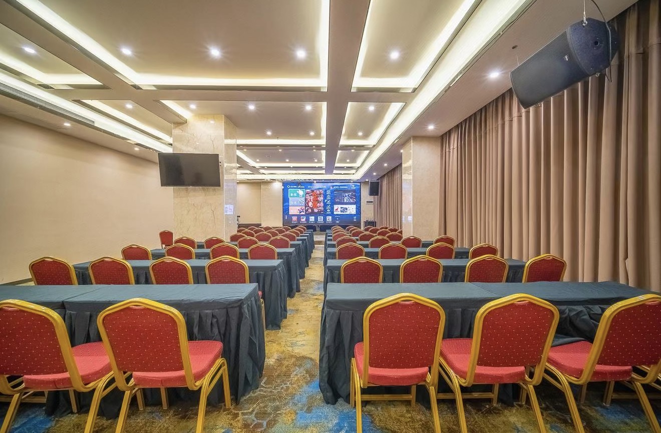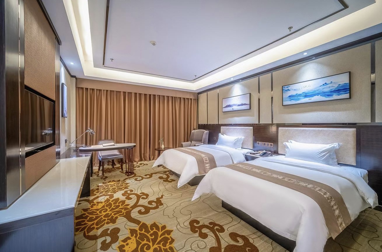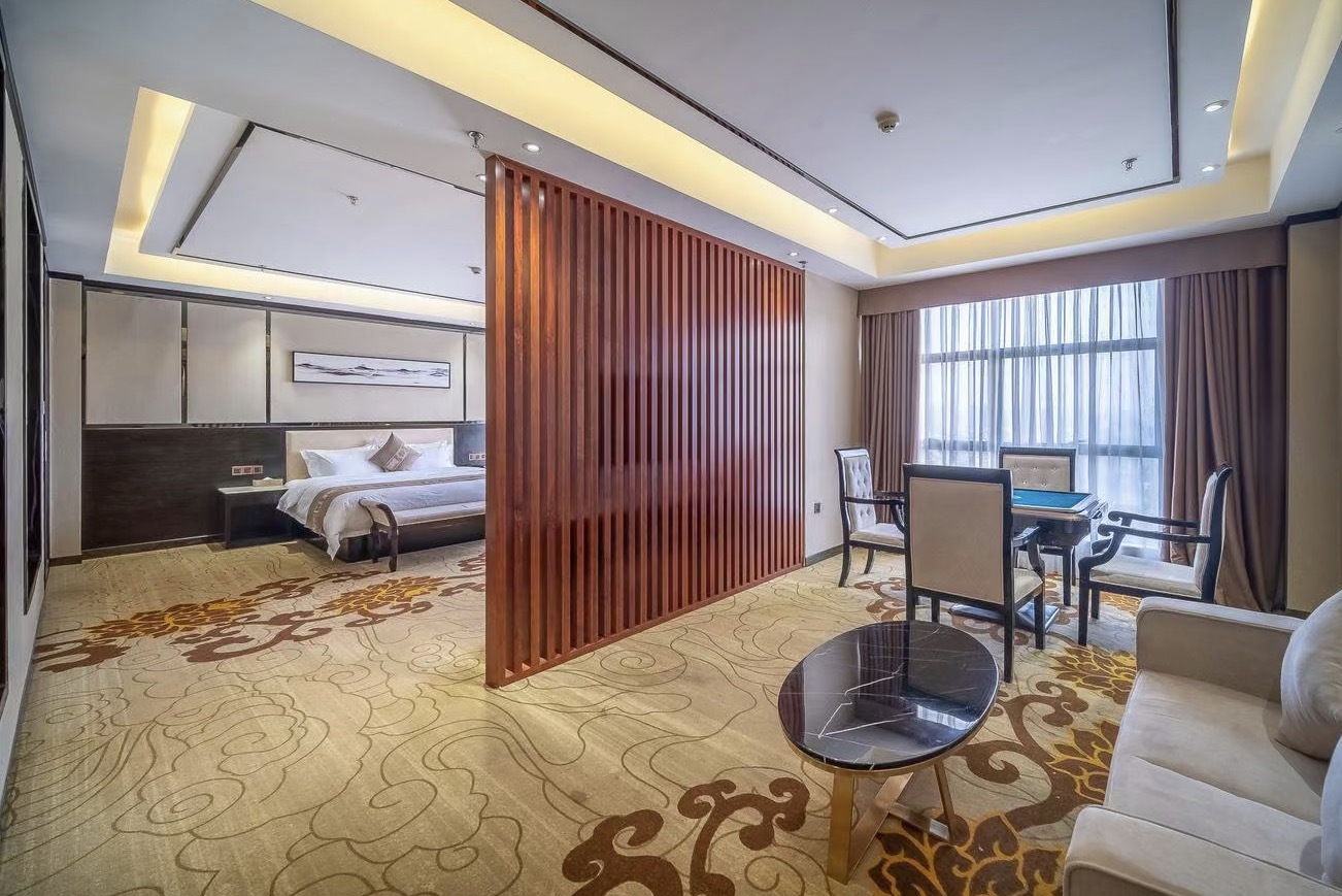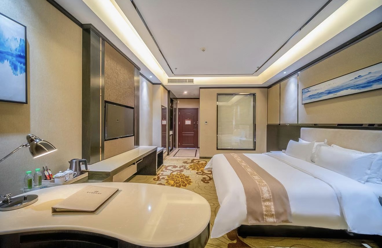 酒店装修豪华典雅,结合中国风元素设计,别具一格,每间房间面积超40平方米,更有80平超大的麻将室,拥有客房百余间,200个停车位,大、中、小会议室三个,优雅中式的景晨餐厅提供品种丰富的营养早餐。