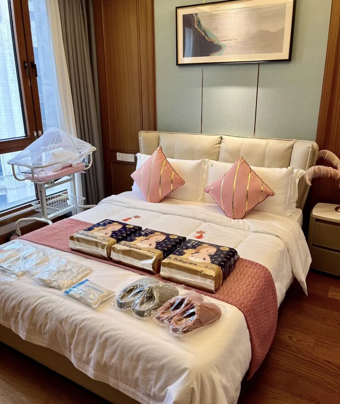 这股风潮早已吹进北京最核心的商圈。北京王府半岛酒店与高端品牌“圣贝拉”的合作堪称经典。在这家位于金鱼胡同的老牌奢华酒店里,圣贝拉直接包下特定楼层,将艺术套房改造为具备医疗级新风系统的“月子行宫”。